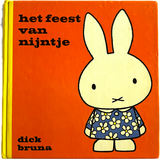 邦訳版「うさこちゃんのたんじょうび」のオランダ語原書です。花柄のドレスを着たうさこちゃんがとてもキュート。だいすきなみんなにお祝いしてもらう誕生日の1日が楽しく描かれています。