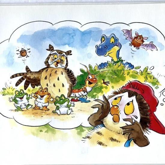 散歩に出かけたリトル・ホー。ごきげんで森のなかを歩いていますが、道を間違えて迷子になってしまいます。